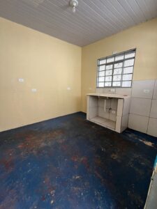 1 dormitório, sala, cozinha, banheiro, quintal grande e garagem para 1 carro.