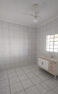 1 dormitório, sala, cozinha, banheiro e quintal grande com garagem.