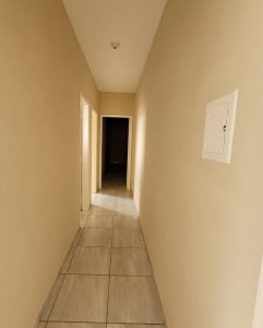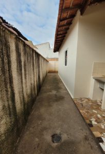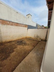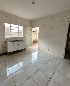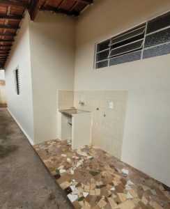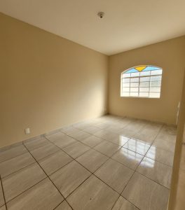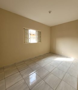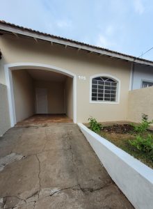 2 dormitórios, sala, cozinha, banheiro, quintal e garagem para 1 carro.