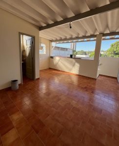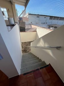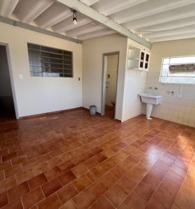 2 dormitórios (1 com armários), sala, cozinha com armários, banheiro, varanda com lavanderia e banheiro, quintal grande e garagem para 1 carro.