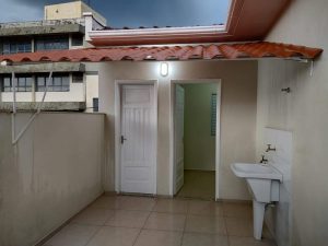 Piso superior: 3 dormitórios (1 suíte) com armários, sala grande, copa, cozinha, banheiro, quintal pequeno com quartinho e banheiro, garagem para 1 carro.